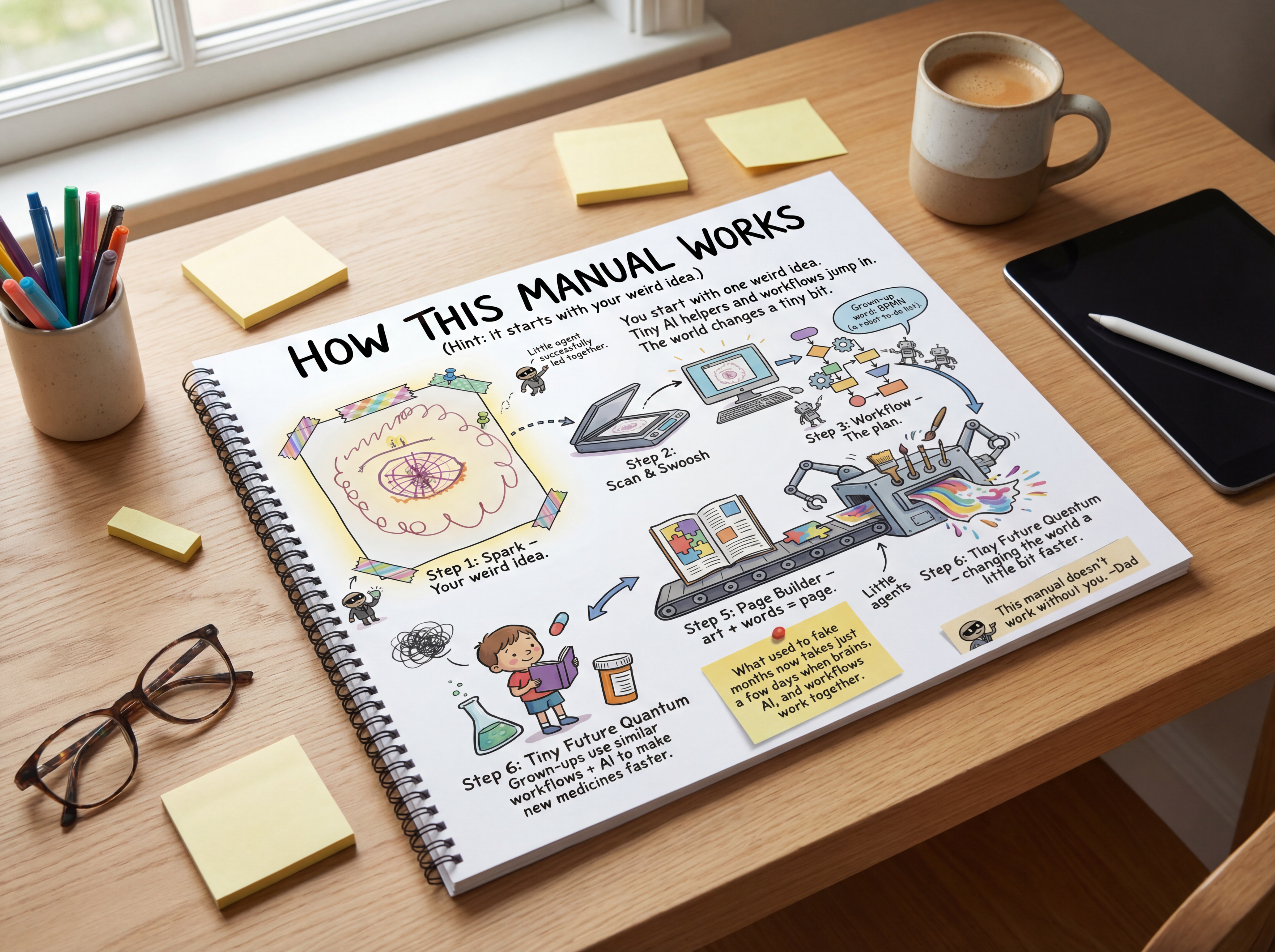 A visual, heartfelt book built from real kid doodles—then expanded into colorful scenes and “invisible waves” of imagination.